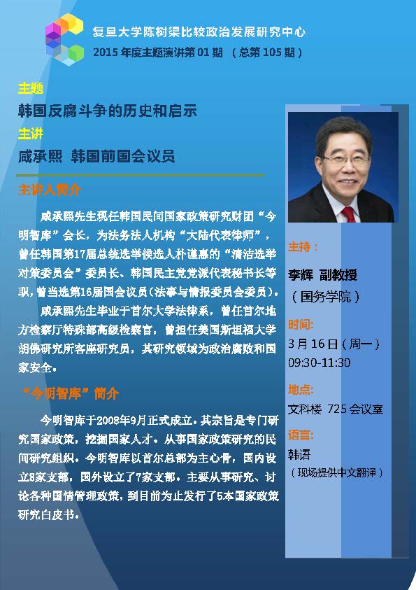 讲座信息:韩国反腐斗争的历史和启示(3月16日上午)