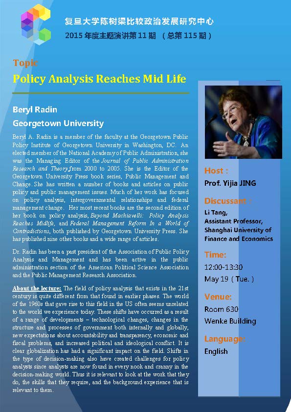 讲座信息:Policy Analysis Reaches Mid Life(5月19日下午)