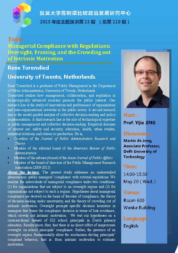 讲座信息:Managerial Compliance with Regulations: Oversight, Framing, and the Crowding out of Intrinsic Motivation(5月20日下午)