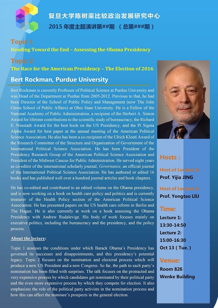 讲座信息:Heading Toward the End – Assessing the Obama Presidency(10月13日)