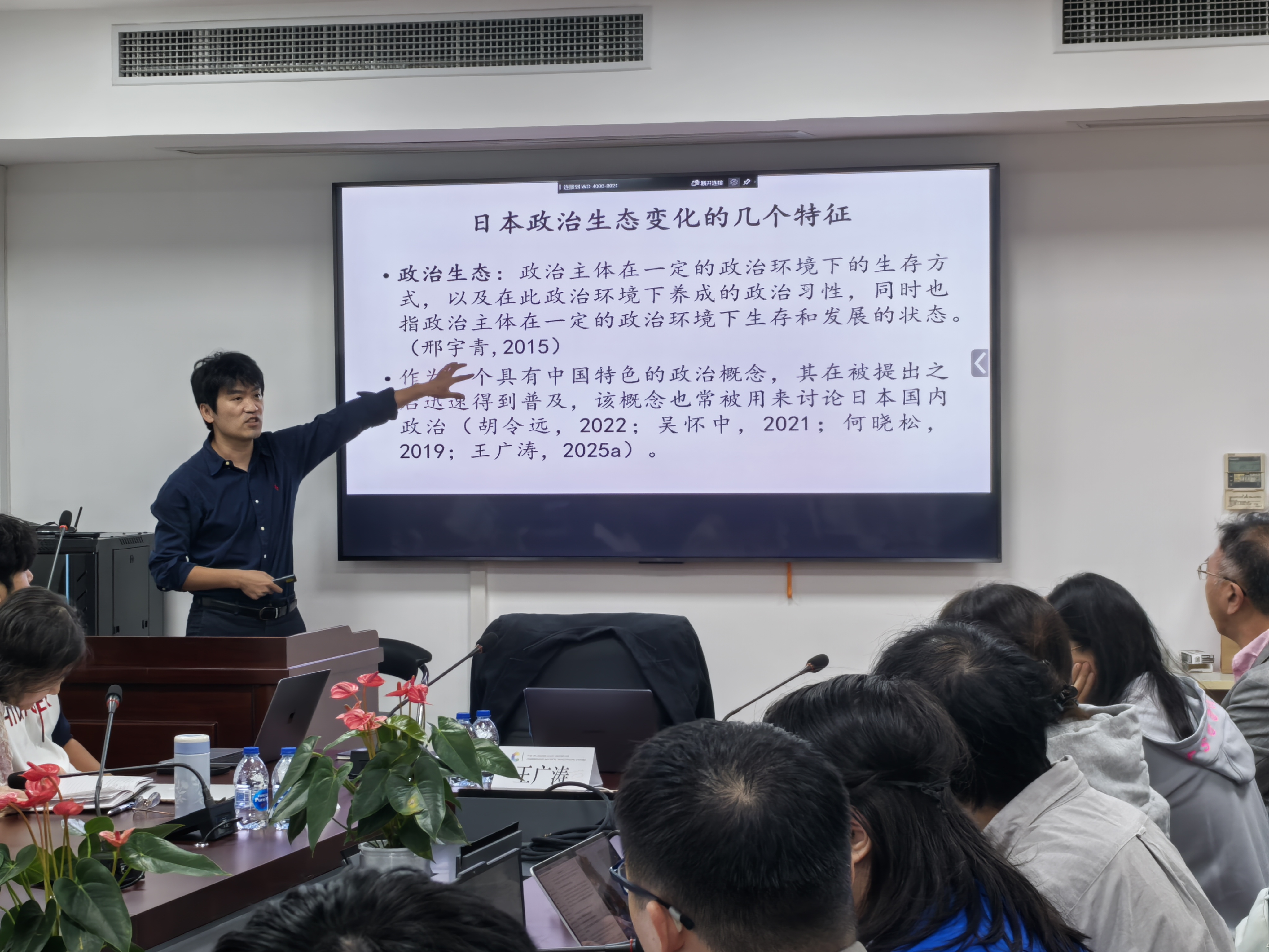 2025年10月20日,复旦大学陈树渠比较政治发展研究中心举办的年度主题演讲第19期(总第388期)在文科楼510会议室成功举行。复旦大学日本研究中心王广涛副教授受邀以“日本政治生态变化与中日关系”为主题发表学术演讲。讲座由复旦大学国务学院郭定平教授主持,复旦大学国务学院包霞琴教授担任与谈人,吸引了众多师生积极参与。