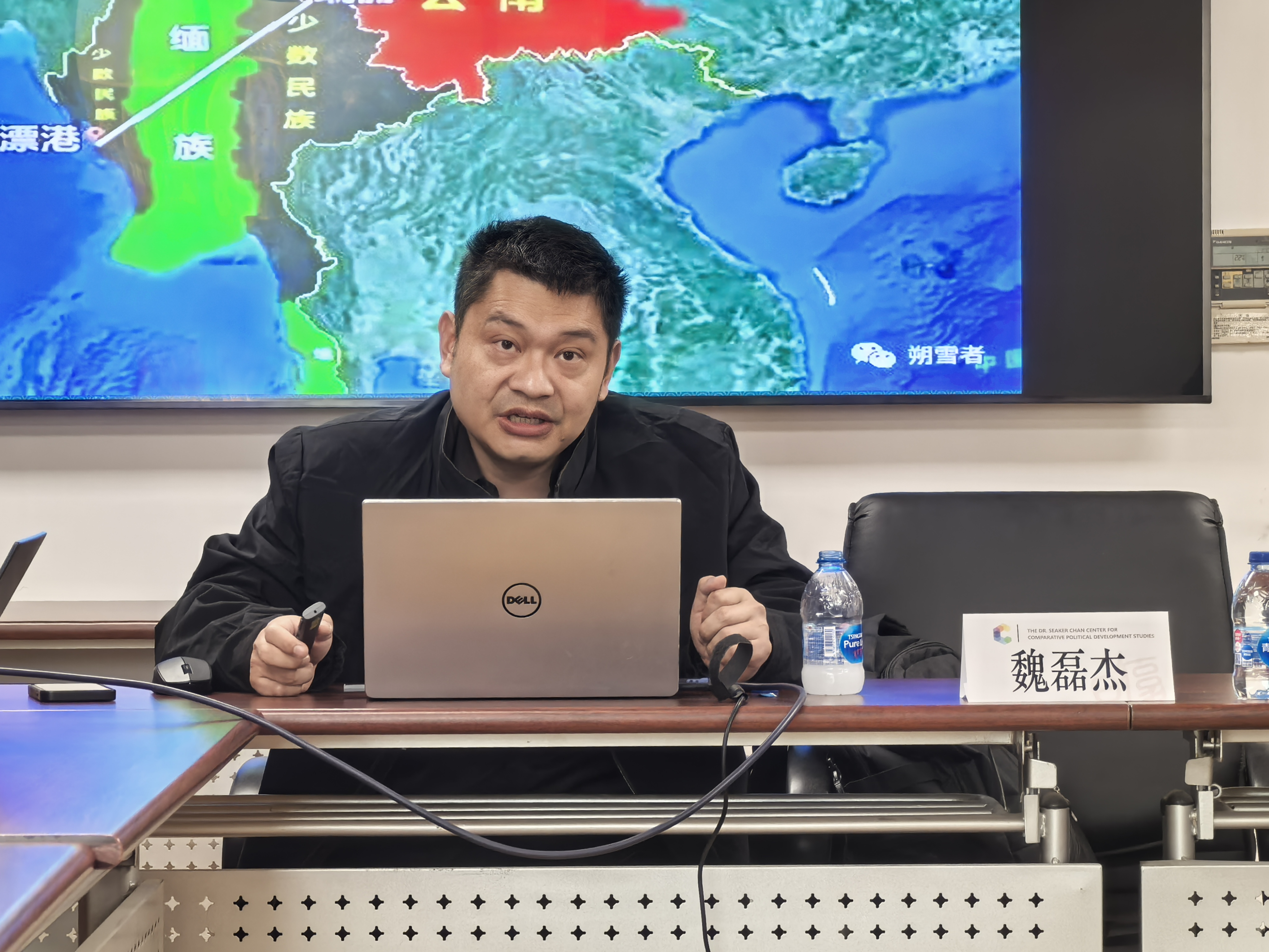 2025年11月19日,复旦大学陈树渠比较政治发展研究中心举办的年度主题演讲第24期(总第393期)在文科楼424会议室成功举行。厦门大学法学院魏磊杰教授受邀以“‘一带一路’政策视野下的滇缅战略新通道:机遇与挑战”为主题发表学术演讲。讲座由复旦大学国际关系与公共事务学院殷之光教授主持,吸引了众多师生积极参与。