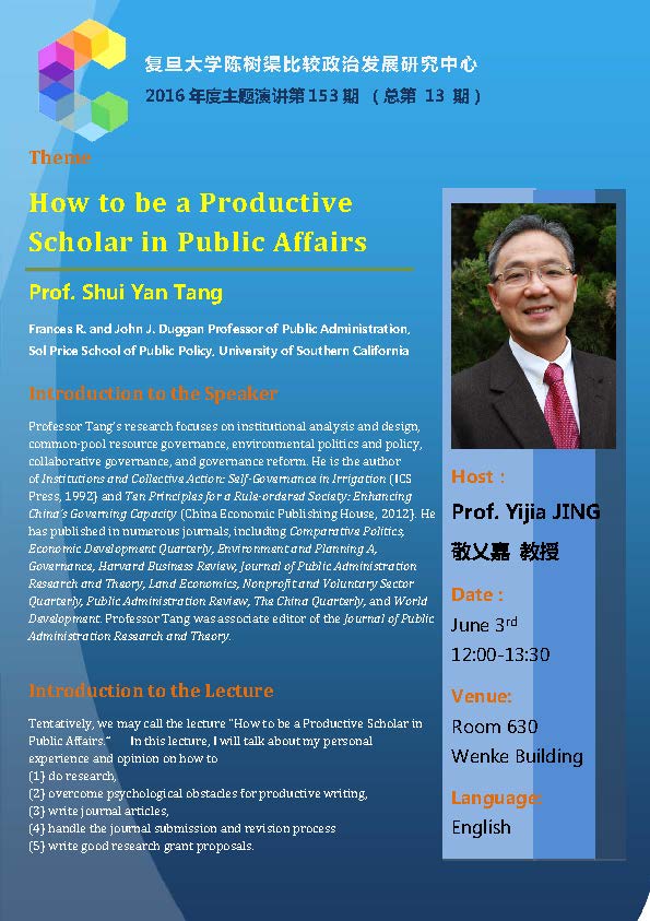 讲座信息:邓穗欣主讲“How to be a Productive Scholar in Public Affairs”(6月3日)