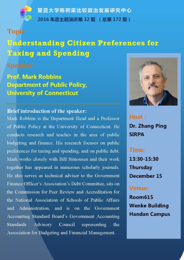 讲座信息:Understanding Citizen Preferences for Taxing and Spending(12月15日)
