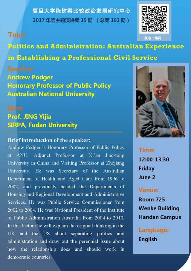 讲座信息:Andrew Podger主讲“Politics and Administration: Australian Experience in Establishing a Professional Civil Service”(6月2日)