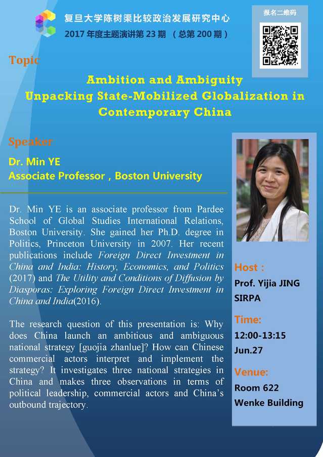 讲座信息:叶敏主讲“Ambition and Ambiguity Unpacking State-Mobilized Globalization in Contemporary China”(6月22日)